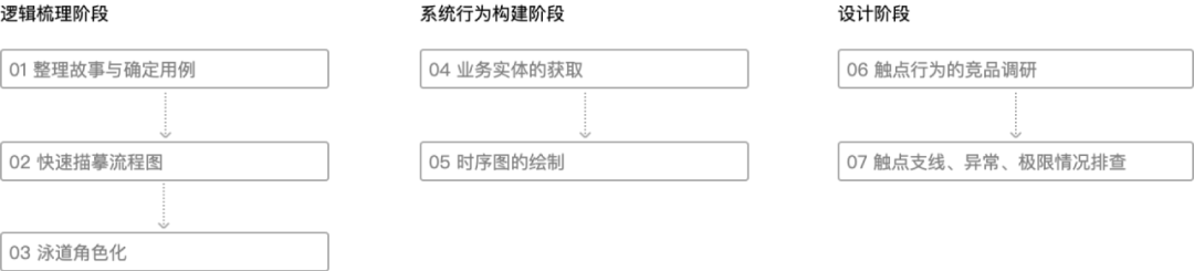 由用例驱动的体验设计过程,着重关注对“行为”的设计。与系统的互动“行为”被协调的、有组织的设计后,为界面表现设计建立坚实基础,避免因逻辑的变更使界面设计反复推倒重来。试图通过在界面设计的过程中寻找线索和灵感,反向的去设计背后逻辑是本末倒置的,个中原由在于我们更易于把控具象的视觉感知,较难把控抽象的行为。