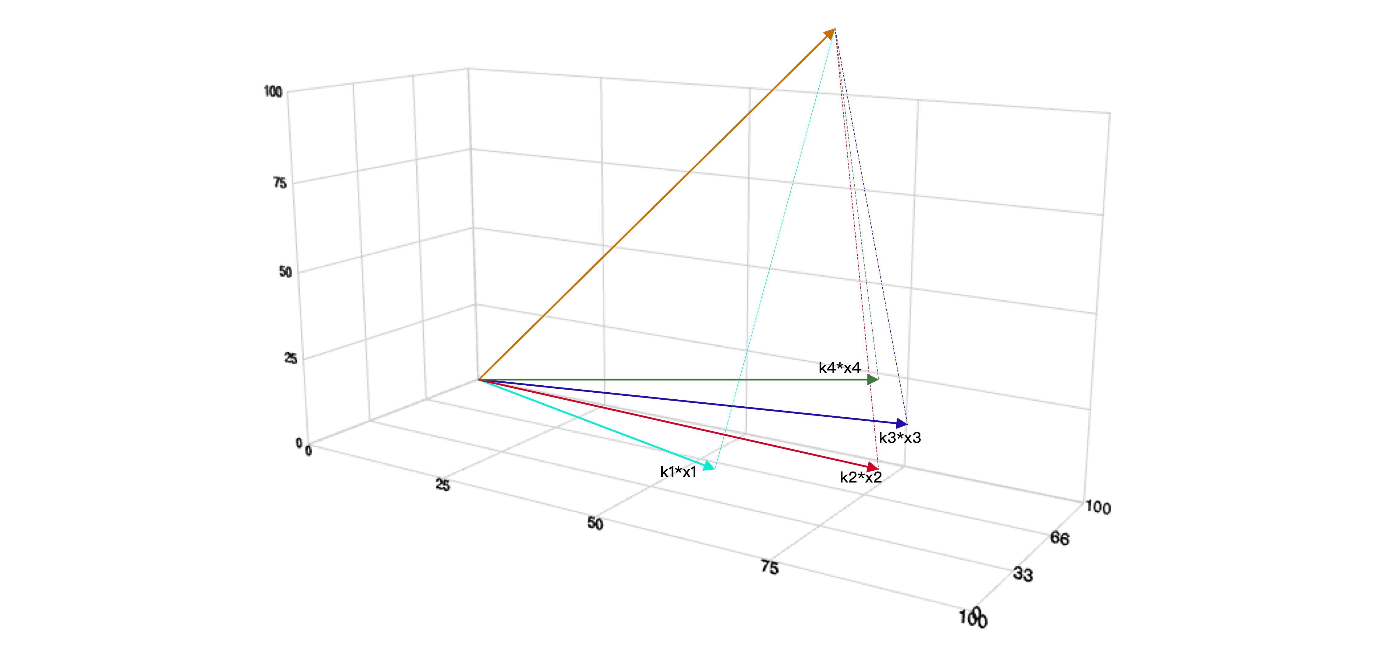 y=k1x1+k2x2+k3x3+ k4x ……